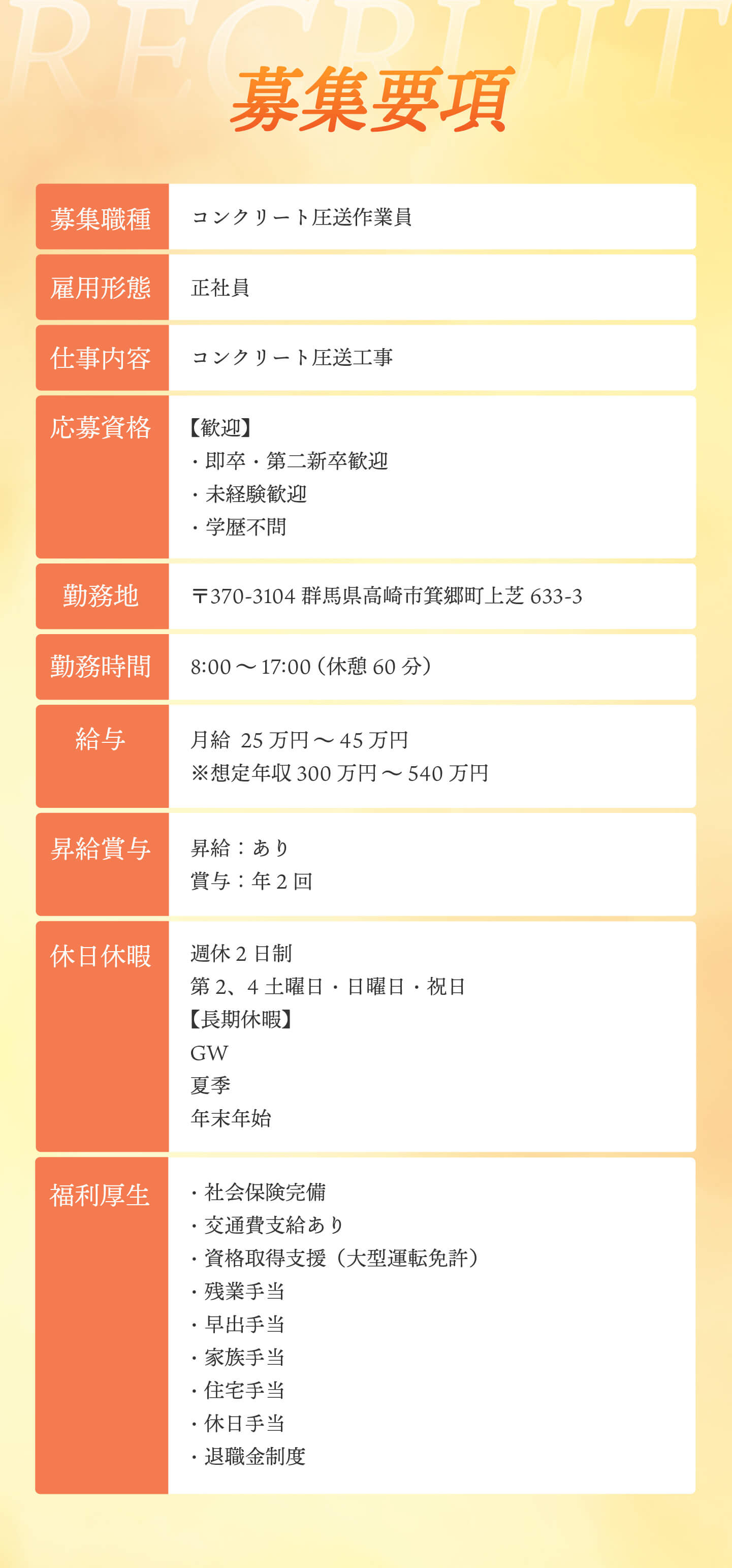 | 事業内容 | コンクリート圧送工事 |